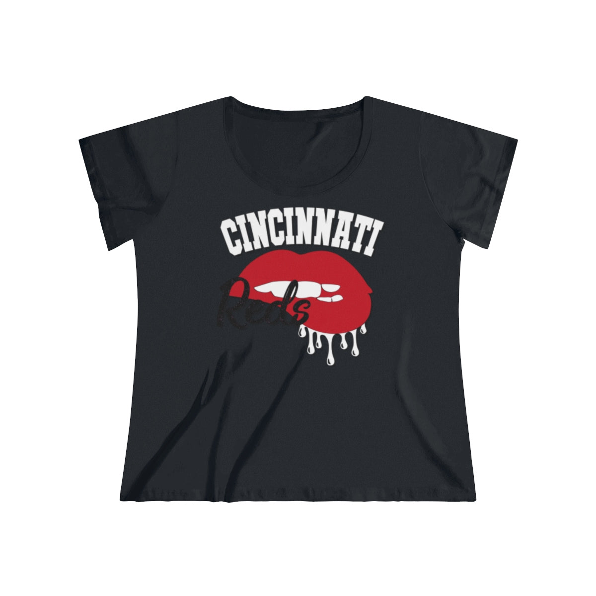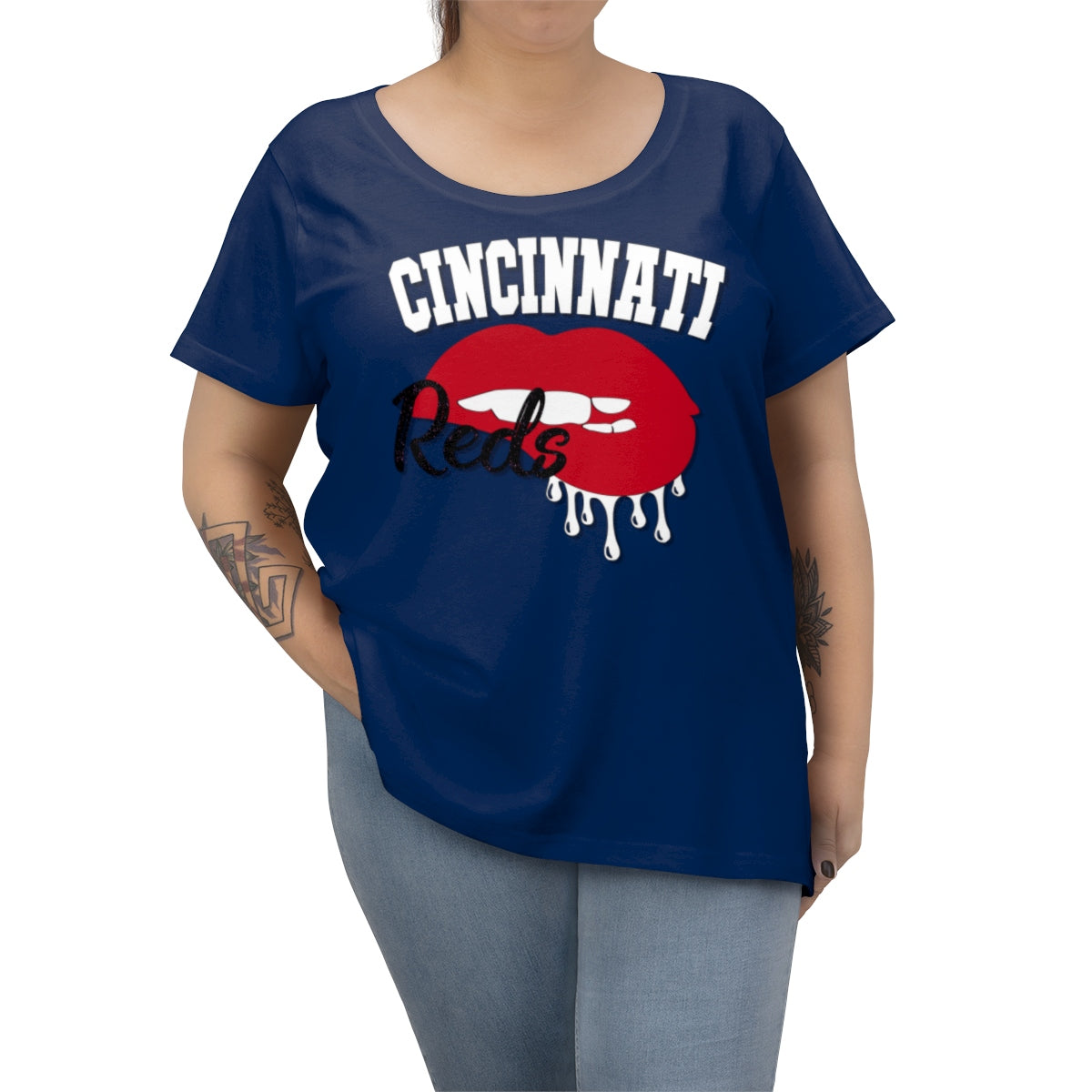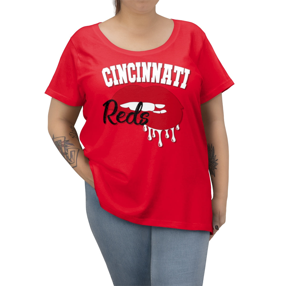 Cincinnati Reds inspired Baseball Dripping Lips Women's Curvy Tee