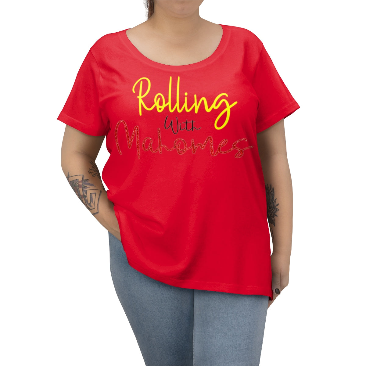 Chiefs inspired Rolling with Mahomes Football Women's Curvy Tee