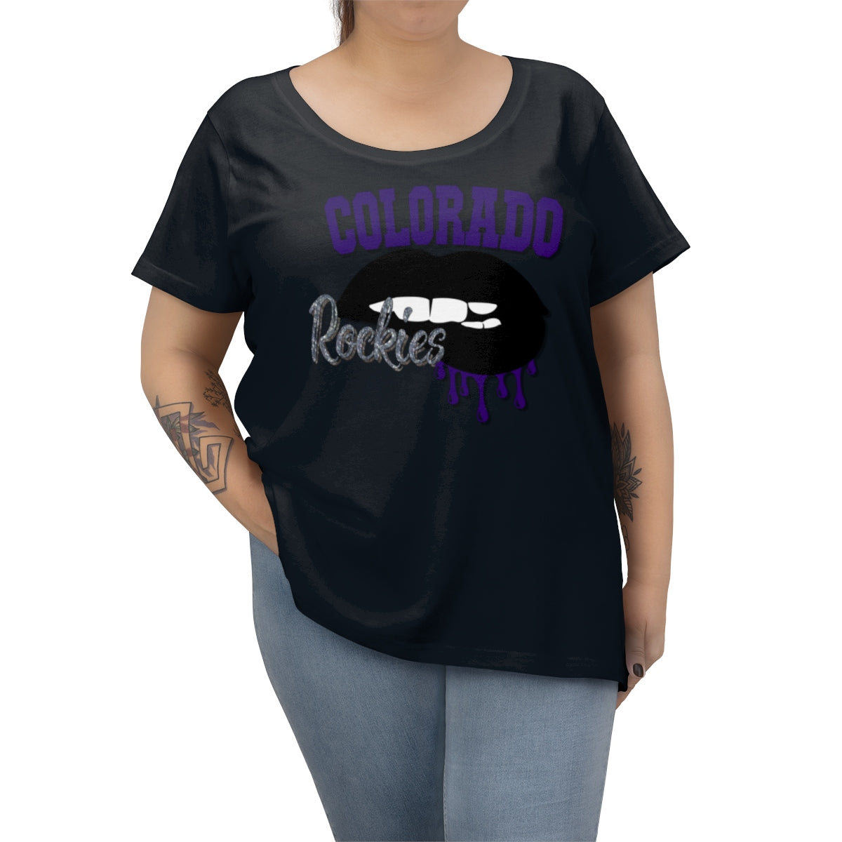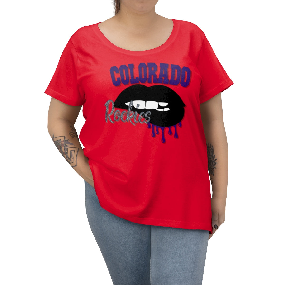 Colorado Rockies inspired Baseball Dripping Lips Women's Curvy Tee