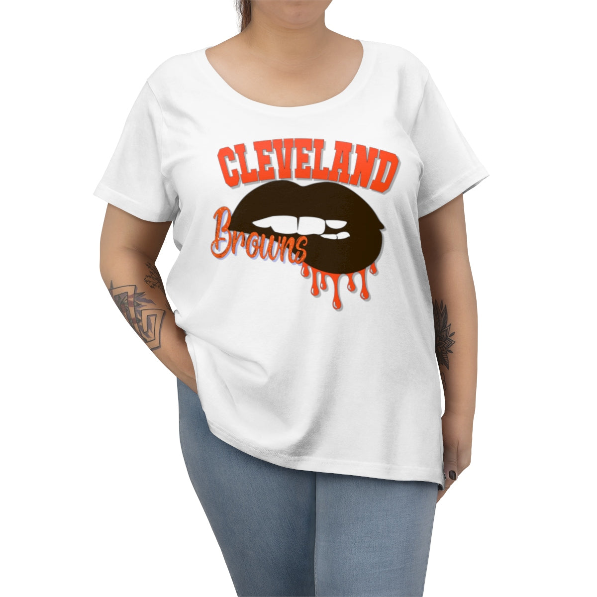 Cleveland Browns inspired Football Dripping Lips Women's Curvy Tee