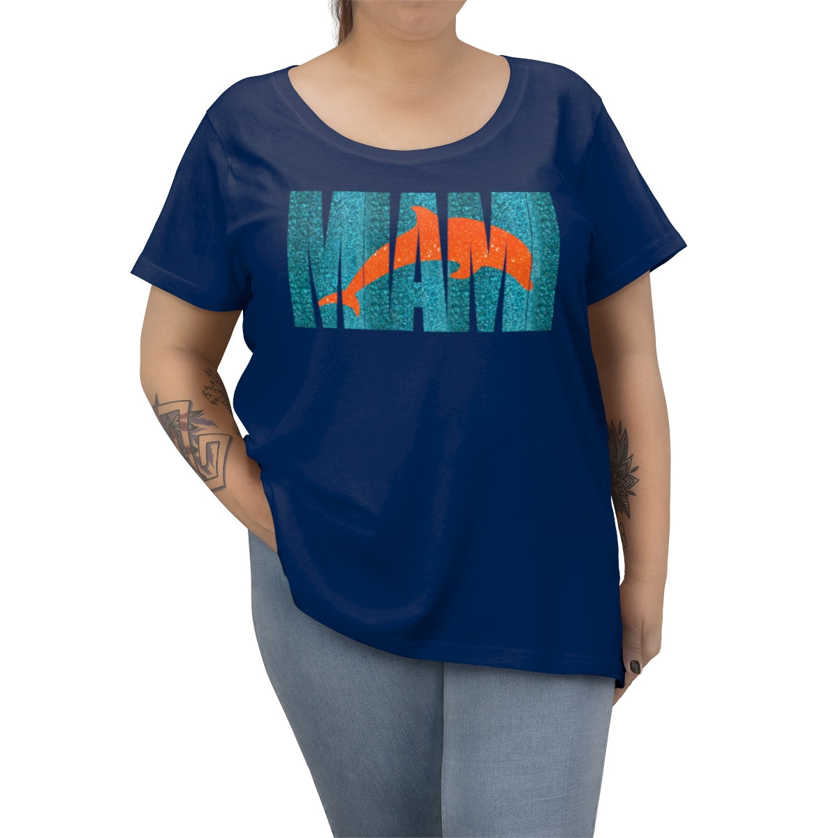 Miami Dolphins Inspired Ombre Glitter Text with Dolphin Glitter inset Women's Curvy Tee